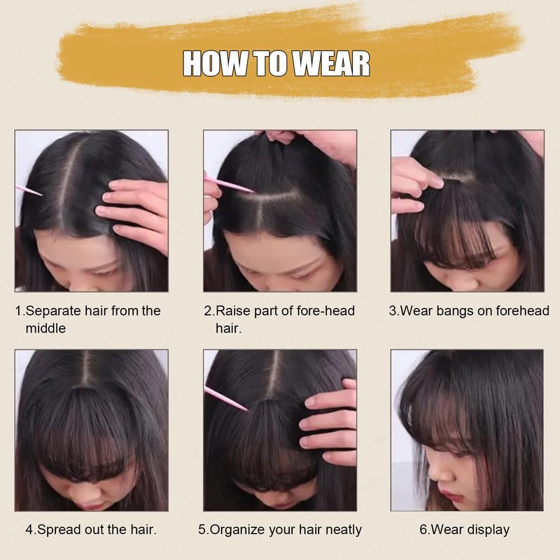 - ✨ [ Easy to Use ]: One-piece hair extensions,featuring a clip style design that is easier to wear and equipped with sturdy hair clips, ensure a comfortable and secure fit without slipping. The lightweight construction of the bangs also makes them easy to wear throughout the day without causing any discomfort. Simply clip them onto your hair, adjust their position, and you can achieve the desired look in a few seconds.