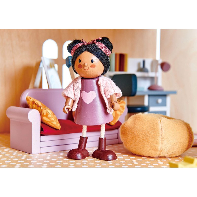 - GREAT GIFT FOR KIDS: Scaled at 1:12, is suitable for all Tender Leaf Toys Dollhouses. Dressed in a pretty pink cardigan with a heart motif, she makes the perfect little friend and an exceptional gift for kids aged 3 to 12 years.