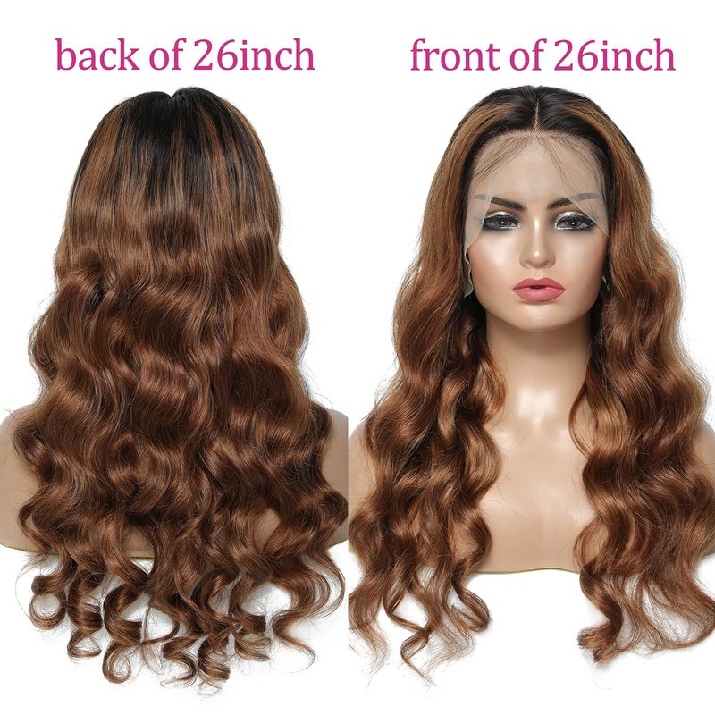 Tendersse 1b/30 Ombre Lace Front Wig Human Hair Pre Plucked Body Wave Glueless Lace Front Wigs Brazilian Virgin Hair 150% Density Brown Color Human Hair Wigs For Black Women(24inch)