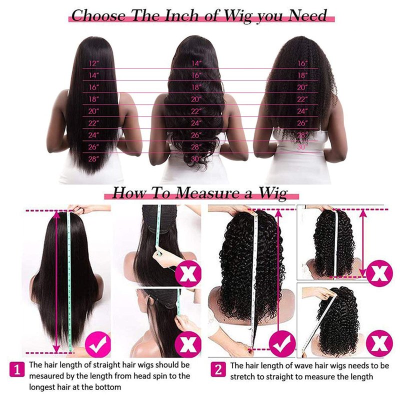 13x4 Front Wigs Human Hair Swiss Lace : The front of the wig made by swiss lace,strong and soft,natural and breathable.Lace color is light brown,suits most skins.Lace size: 13inch Length and 4inch width.