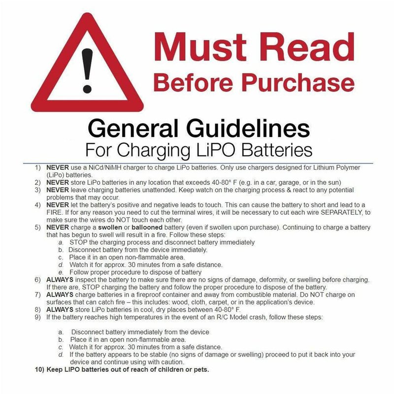 - Works with multiple voltages - Compatible with battery packs with voltages that range from 1.2volts to 18volts (1S-15S) for nickel metal hydride or nickel–cadmium battery packs and Lithium-ion battery packs with voltages from 3.7 volts to 22.2 volts (1S-6S).
