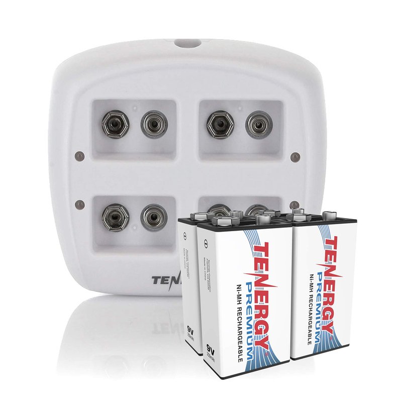 Tenergy TN136 4 Bay 9V Smart Charger with 4 Pieces Tenergy Premium 9V NiMH Rechargeable Batteries
