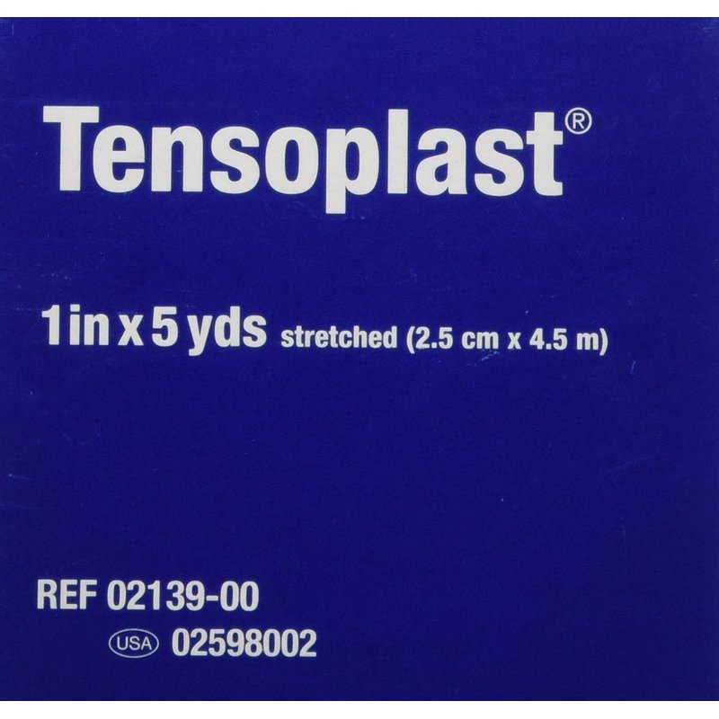 Tensoplast Elastic Adhesive 1" Bandage is an elastic adhesive bandage which is suitable for medium support or compression. Superior stretch and regain provides firm, controlled compression and support. The porous adhesive of the BSN-Jobst Tensoplast bandage helps prevent skin maceration. Fluffy non-fray edges prevents the bandage from rucking or marking. It has high adhesive property and is water repellant and air permeable. This product contains dry natural rubber. Tan. Each adhesive bandage roll is 1" x 5 yds. stretched. Sold here by the individual roll. Also sold by the case of 36 rolls.