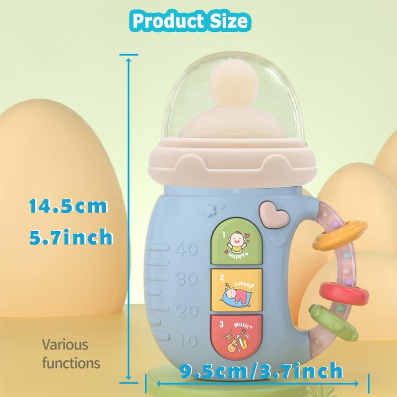 - Baby Musical Toys: Discover an adorable toy cartoon milk bottle that features music, lights, bright colors, rattles and seven models designed! A gift box set, perfectly to be a wonderful gift for babies. Suits for 18+ months children