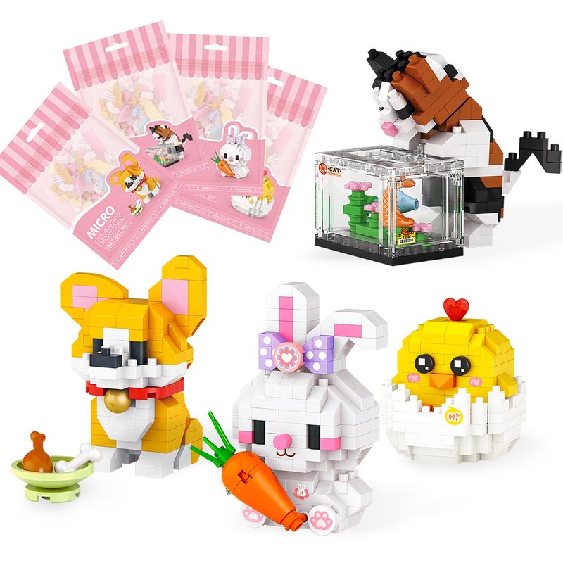 TENYEAH 4 in 1 Animals Mini Building Set, Corgi Dog Cat Rabbit Chick Micro Bricks Building Kit, Classroom Prizes, Goodie Bags, STEM Toys, Birthday Gift, Party Favors for Kids Ages 8-14+(640pcs)