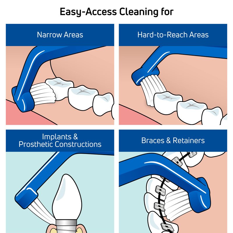 - TOOTHBRUSH FOR BRACES: This soft cleaning brush is ideal for use as a braces toothbrush, denture brush, to clean retro lined teeth, lingual braces, retainers or implants.