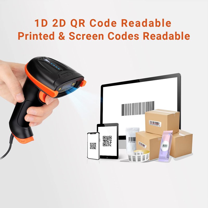 Tera 2D Barcode Scanner with Stand Wired USB 2.0 Handheld Read 2D QR Code Scanner Data PDF417 Matrix 1D Bar Code CMOS Image Barcode Reader for Windows Mac Linux Plug and Play Model D5100Y-Z
