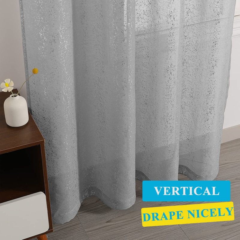 - Unique Shimmer Silver Grey Curtains - Chic sparkle voile sheer curtains feature metallic silver foil printed spots will instantly glam up any rooms in your house. Ideal for bedroom, living room, dining room or used as backdrop for party/celebration and more...
