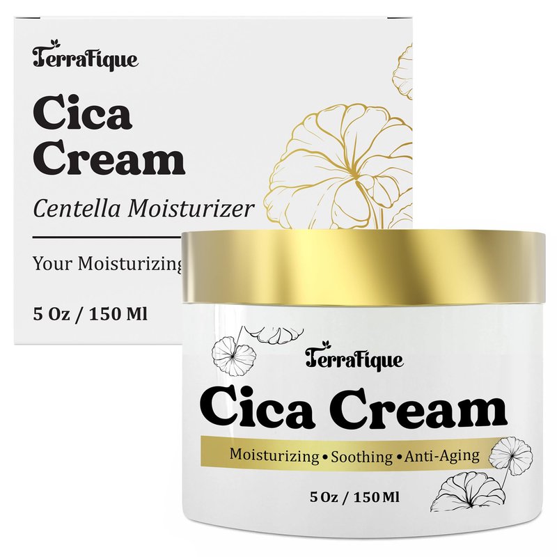 TERRAFIQUE Cica Cream - Centella Moisturizer Face Cream - Anti Aging Face Cream For Women - Hydrating Face Moisturizer For All Skin Types - 5 Oz / 150 Ml
