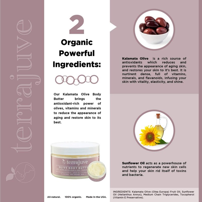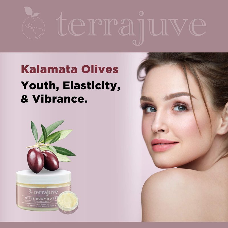 Terrajuve Body Butter, Deep Hydration Formula, Achieve Luscious Legs, Lightens Under Eye Circles, Reduces Wrinkles, Fades Stretch Marks, Raw, Organic, All Natural, Made in USA (Olive Body Butter)