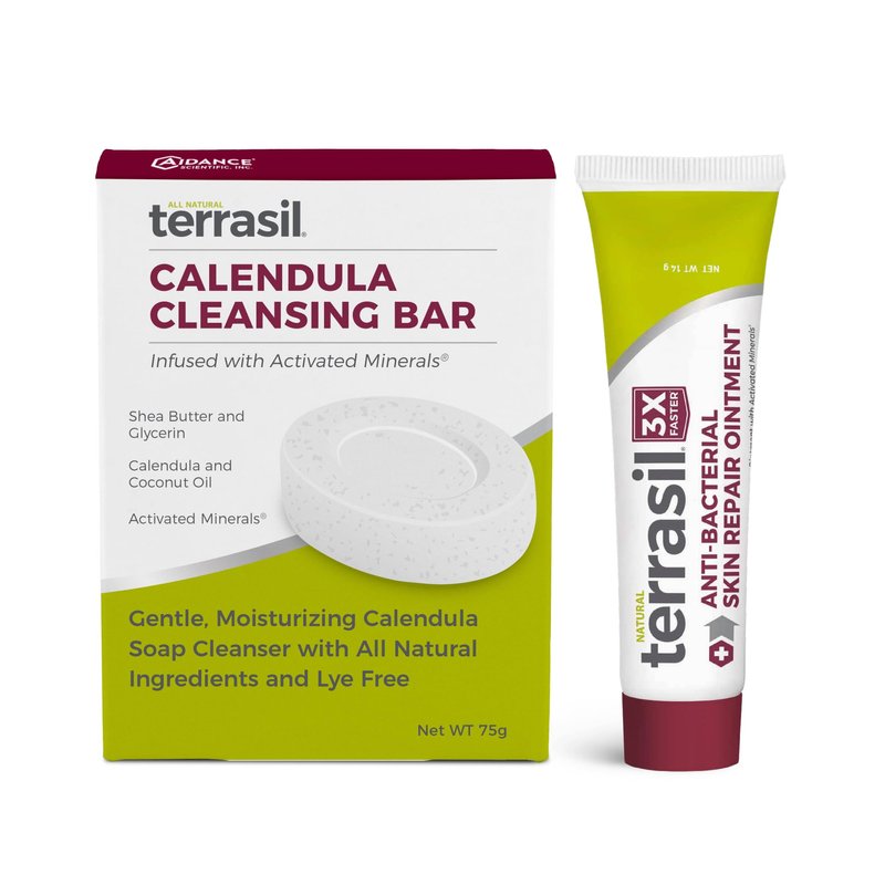 - POWERFUL, EFFECTIVE PROTECTION & HEALING: Terrasil is formulated to support skin repair and healing while protecting damaged skin from infection, killing 99.99% of bacteria. Further protect and cleanse skin with soothing medicated Calendula soap. Ideal for all skin types.