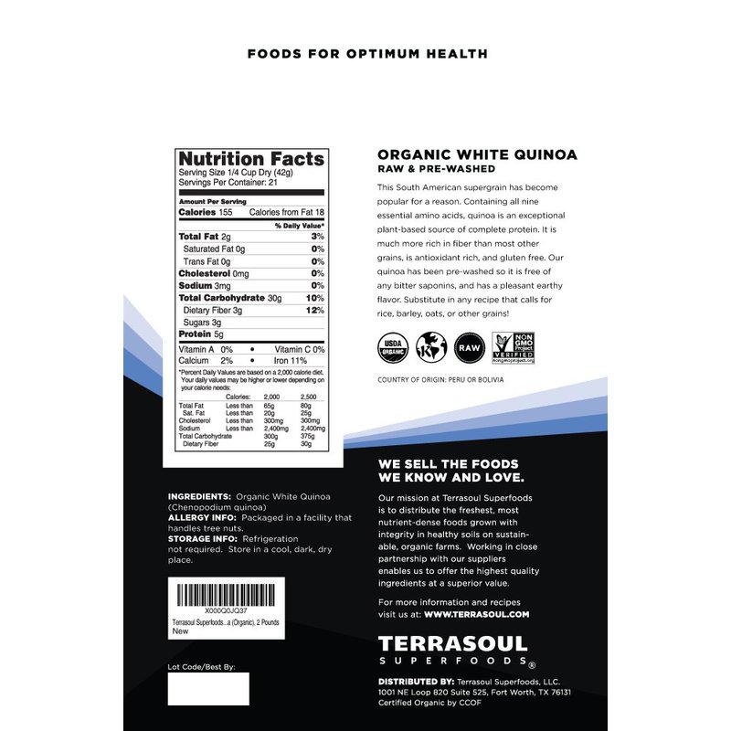 - Terrasoul Superfoods Organic White Quinoa, 2 Pounds