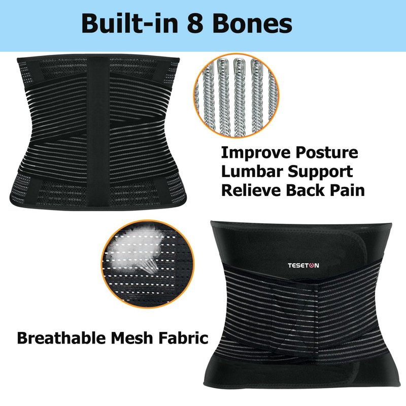 - ✅ RELIEVE LOWER BACK PAIN: The TESETON back brace for men and women features 8 built-in reinforced bones, providing 360°stronger vertical support for the lower back. This design prevents muscle rolling, reduces disc and waist pressure, and provides firm support, stability, and limits unwanted movements. This brace is effective in relieving back pain, as well as addressing lumbar and back conditions such as sciatica, disc herniation, and scoliosis.