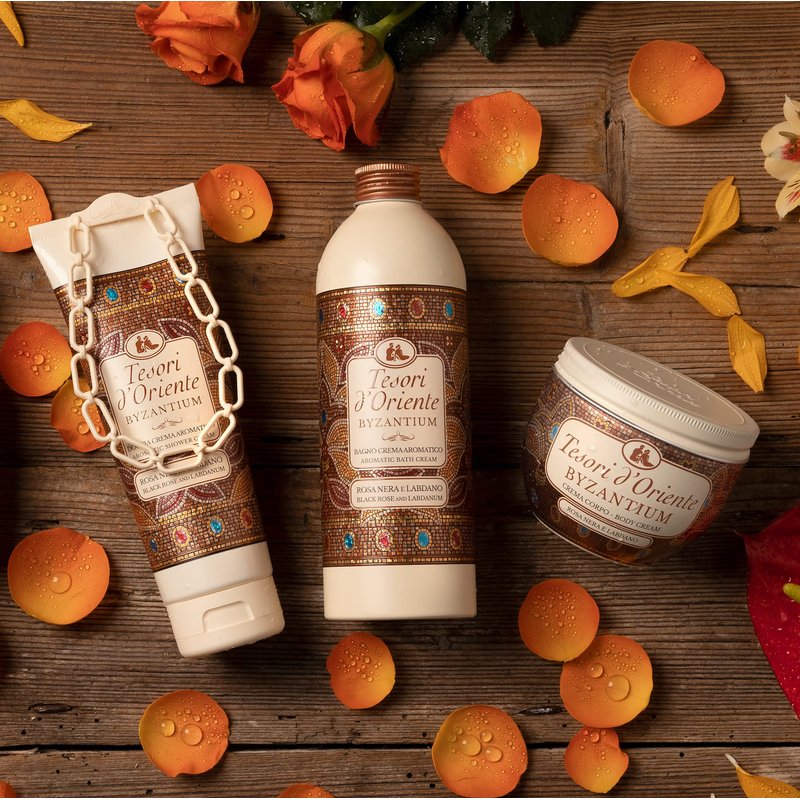 - Aromatic Bath Cream with Black Rose and Labdanum, a many-sided essence, just like a precious Byzantine mosaic