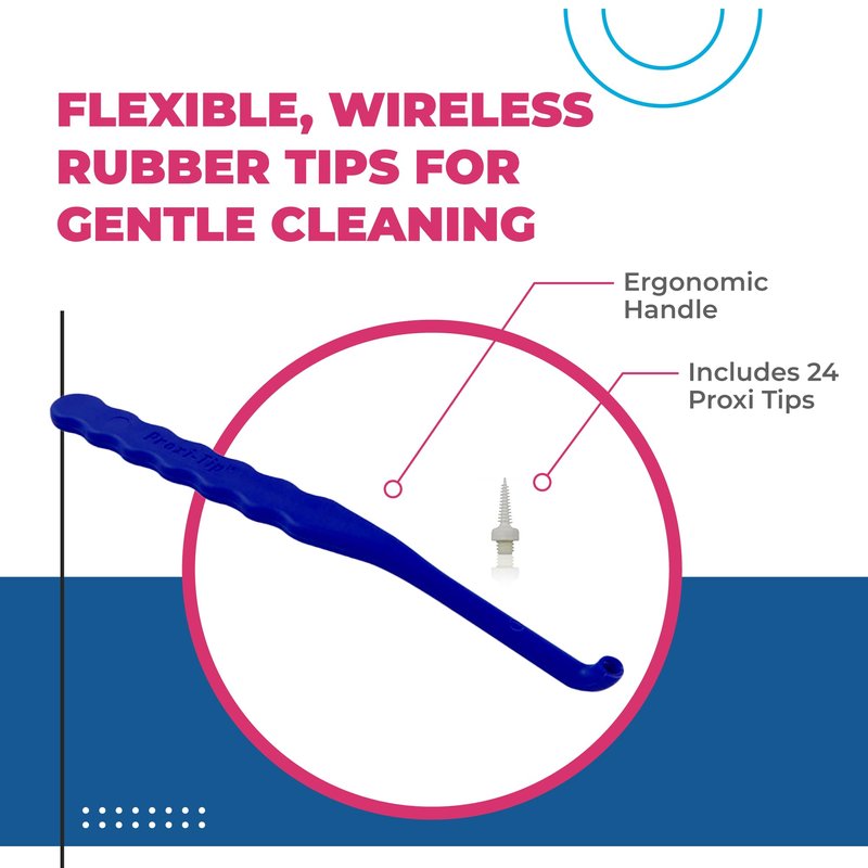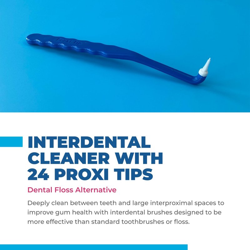 Discover the ultimate dental floss alternative with the Interdental Brush Handle and 24 Proxi Tips. This meticulously designed tool is your key to achieving unparalleled interdental cleaning for a healthier, more confident smile. The Interdental Brush Handle's ergonomic design allows for ultra-deep cleaning between teeth, resulting in improved gum health and elevated dental hygiene. What makes this tool extraordinary is its gentleness and versatility. It's the perfect solution for post-surgical periodontal patients with larger interproximal spaces and is safe for use on implants, bridges, and braces. Say goodbye to the complexities of traditional dental floss or picks, as this tool simplifies the process while delivering unsurpassed interdental cleaning, ensuring a radiant smile that exudes confidence. The Proxi-Tip is flexible and wire-free, providing enhanced safety, ease of use, and overall convenience for your dental care routine. The Interdental Brush Handle Kit includes 24 Proxi Tips, making it effortless to maintain your dental health and significantly improve both your teeth and gum health. Elevate your dental care with the Interdental Brush Handle and 24 Proxi Tips and experience an easier, more effective, and gentle approach to interdental cleaning