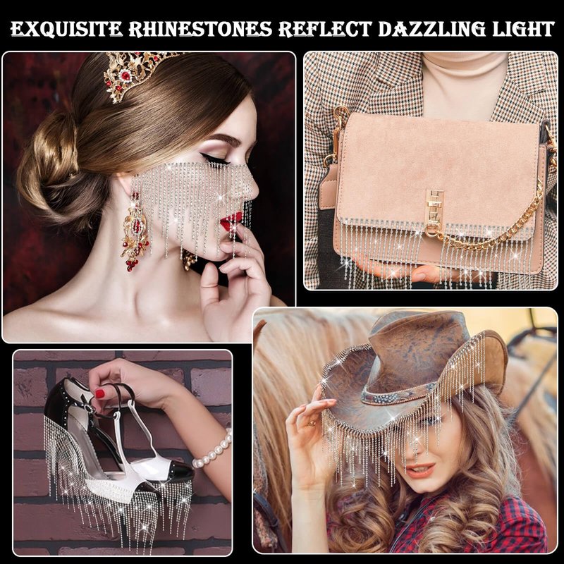 - 💎【Wide Application】The rhinestone string is great for crafts such as clothes, hats, vases, table lamps and more. the rhinestone trim fringe for women can also add shine to many celebrations including weddings, holidays, festivals, theme parties, graduations, anniversaries and seasonal events.