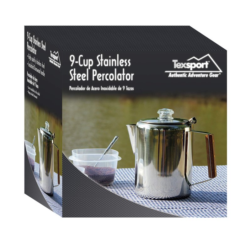 Texsport 9 Cup Stainless Steel Percolator Coffee Maker for Outdoor Camping