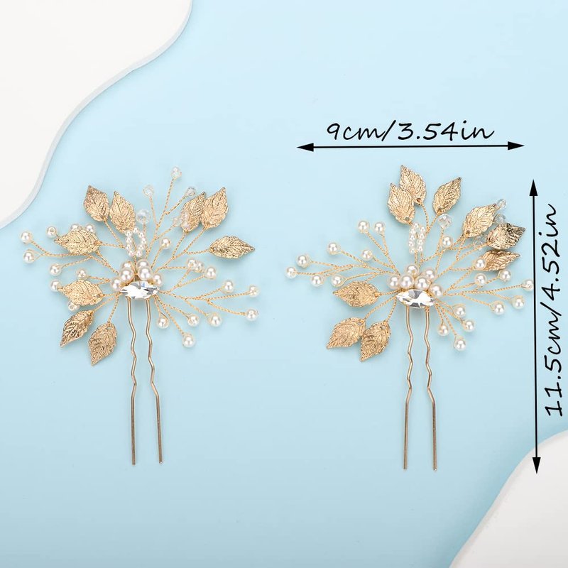 Teyglen 2pcs Bride Wedding Hair Pins Set Gold Leaf Rhinestones Beads Hair Pins Set Bridal Hair Accessories for Bride Gold Crystal Rhinestones Hair Pieces for Women Girls