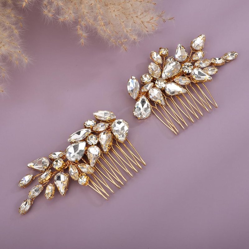 Teyglen 2pcs Rhinestone Bride Wedding Hair Comb Gold Silver Crystal Hair Piece Bridal Rhinestone Hair Side Comb Full Rhinestone Headpiece Hair Jewelry Accessories for Women Bride Girls (Gold)