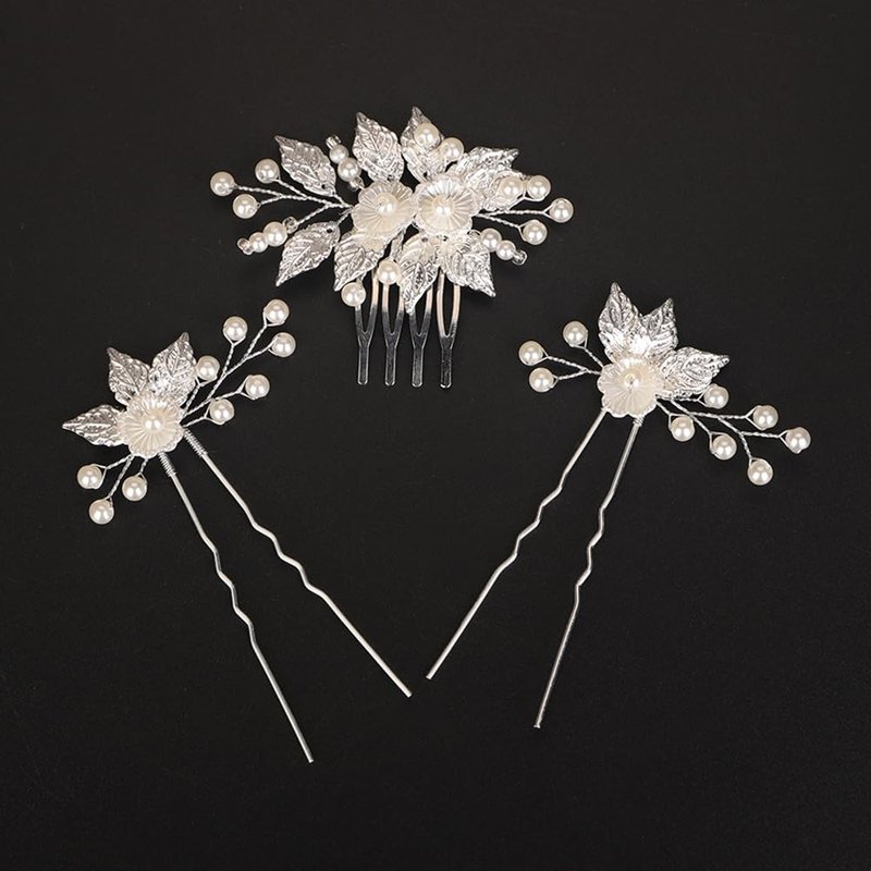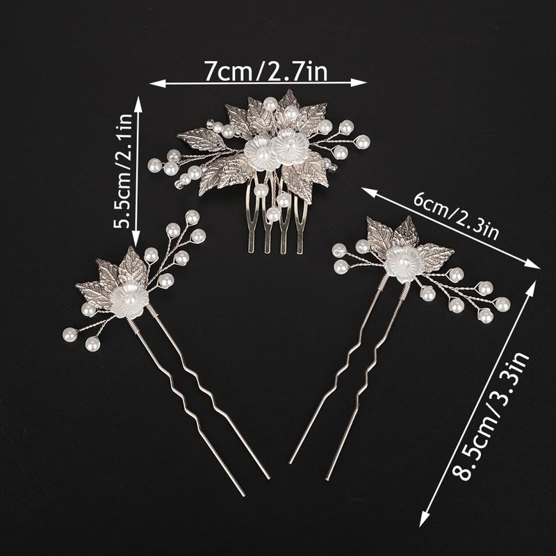 - Boho silver leaf pearl hair comb and pins set for women party prom wedding and evening,exquisite and unique design,will add more charm for your outfit.