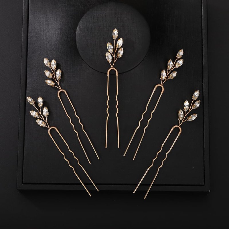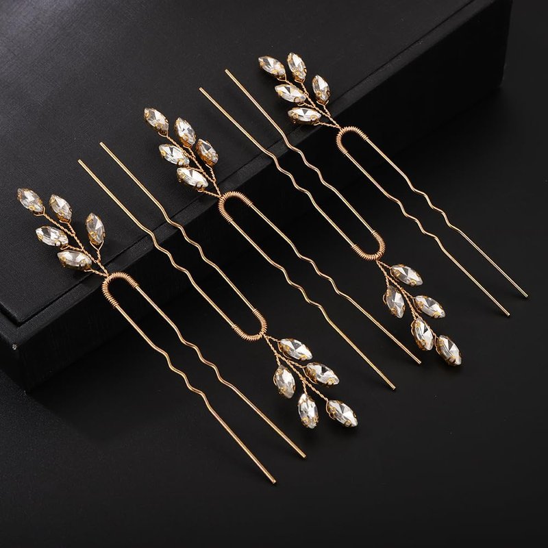 - Simple gold crystal rhinestone hair pins set.