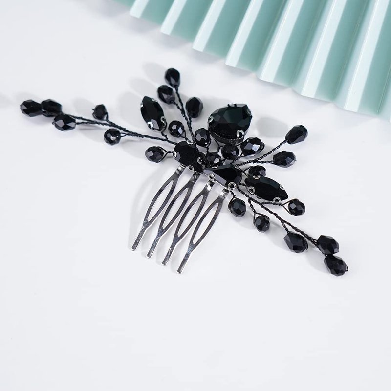 Teyglen Black Crystal Hair Comb Bridal Black Rhinestone Hair Comb Wedding Hair Accessories Shiny Black Rhinestone Side Hair Comb Black Headpiece Hair Pieces for Women Bride Girls