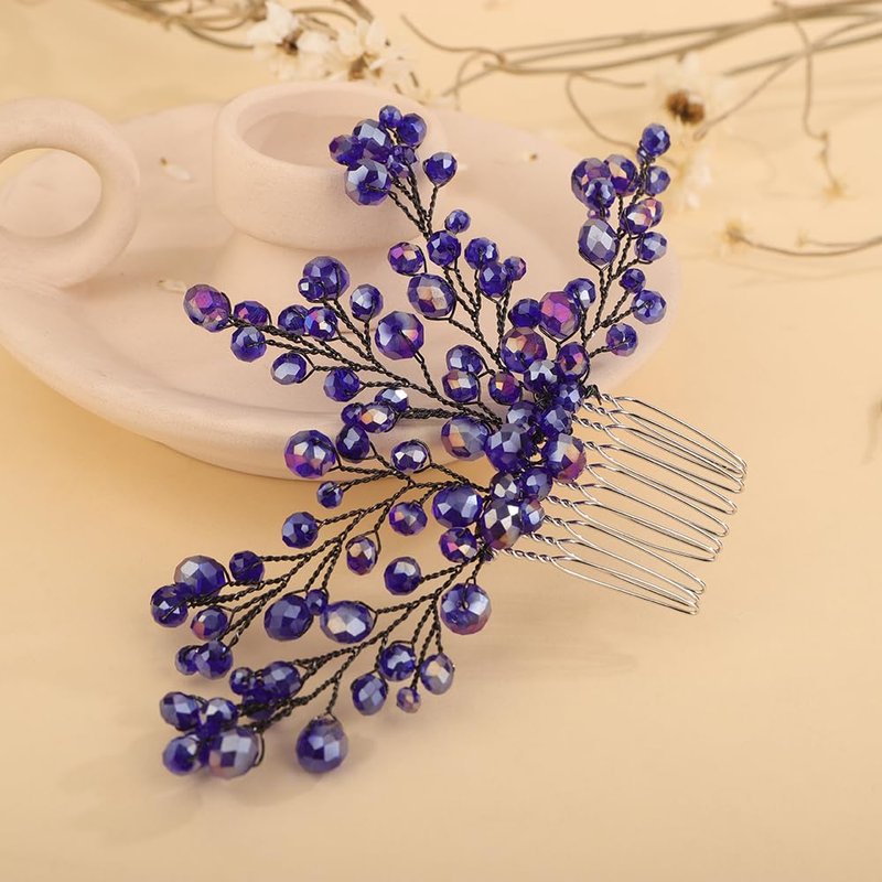 - Sparkly blue crystal beads hair comb for women party prom wedding and evening,exquisite and unique design,will add more charm for your outfit.