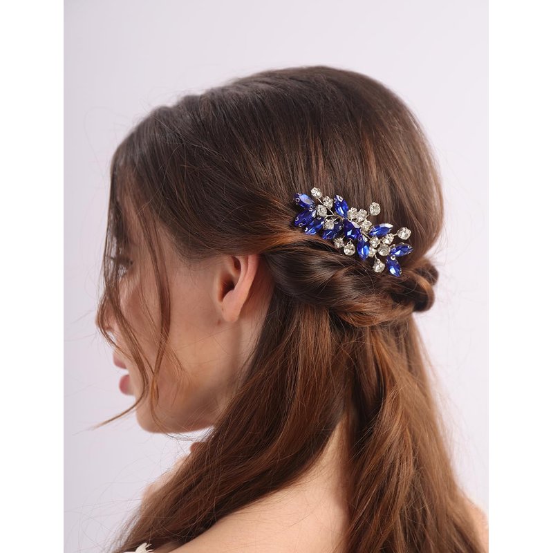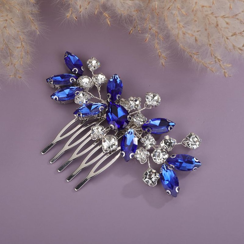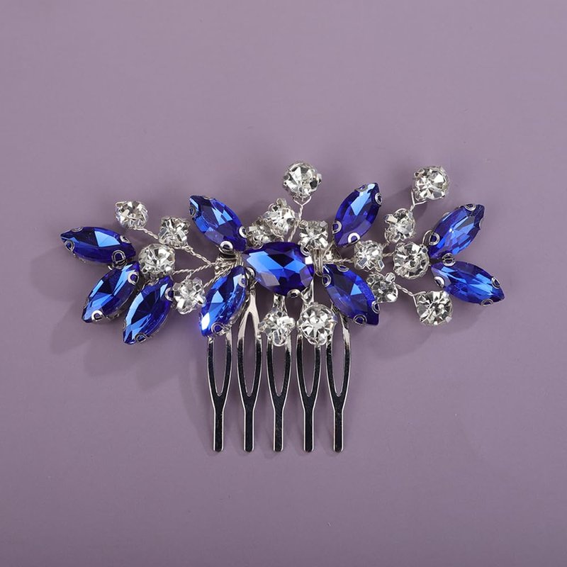 - Sparkly cute silver blue crystal rhinestone hair comb for women party prom wedding and evening,exquisite and unique design,will add more charm for your outfit.
