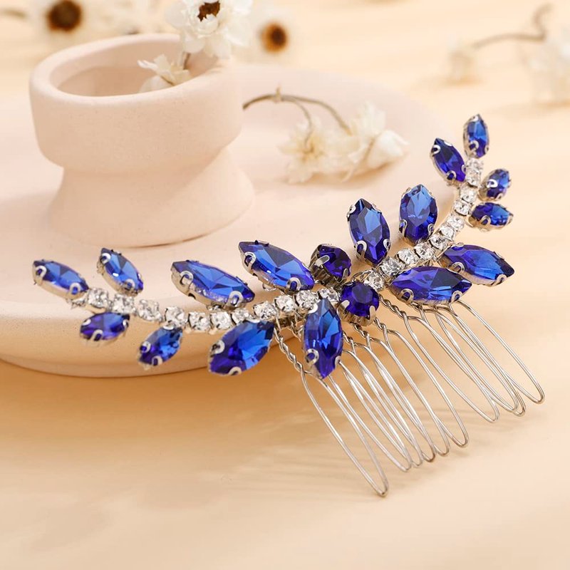 - Women Dainty Blue Crystal Rhinestones Hair comb
