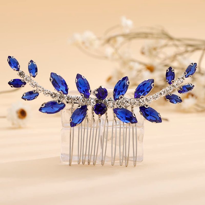 Teyglen Blue Rhinestone Wedding Hair Comb Bridal Crystal Hair Side Comb Handmade Crystal Hair Pieces Bridal Headpieces Hair Accessories for Women Bride Girls (Blue)