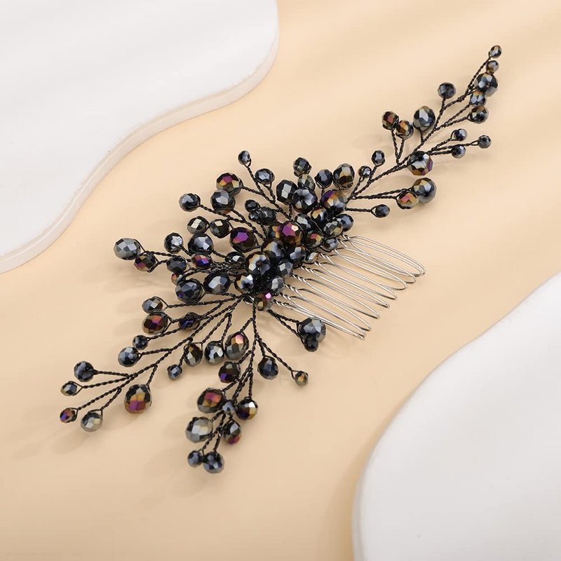 Teyglen Bridal Black Crystal Hair Comb Gothic Black Rhinestone Wedding Hair Side Comb Headband Handmade Hair Pieces Headpieces Hair Jewelry for Women Girl Party Prom