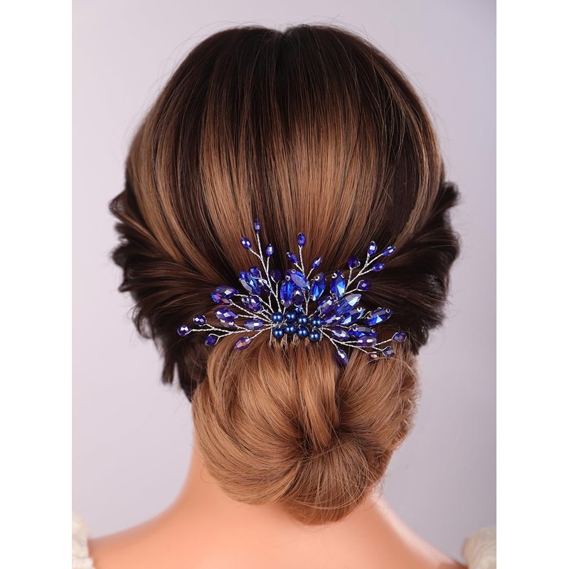 - Delicate blue crystal pearl hair comb for women party prom wedding and evening,exquisite and unique design,will add more charm for your outfit.