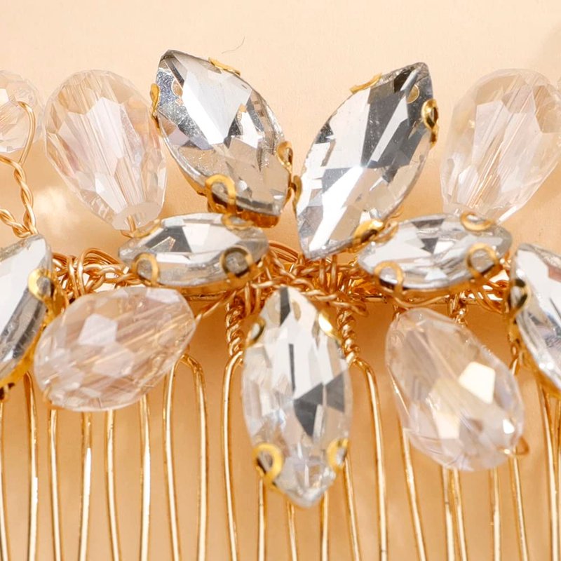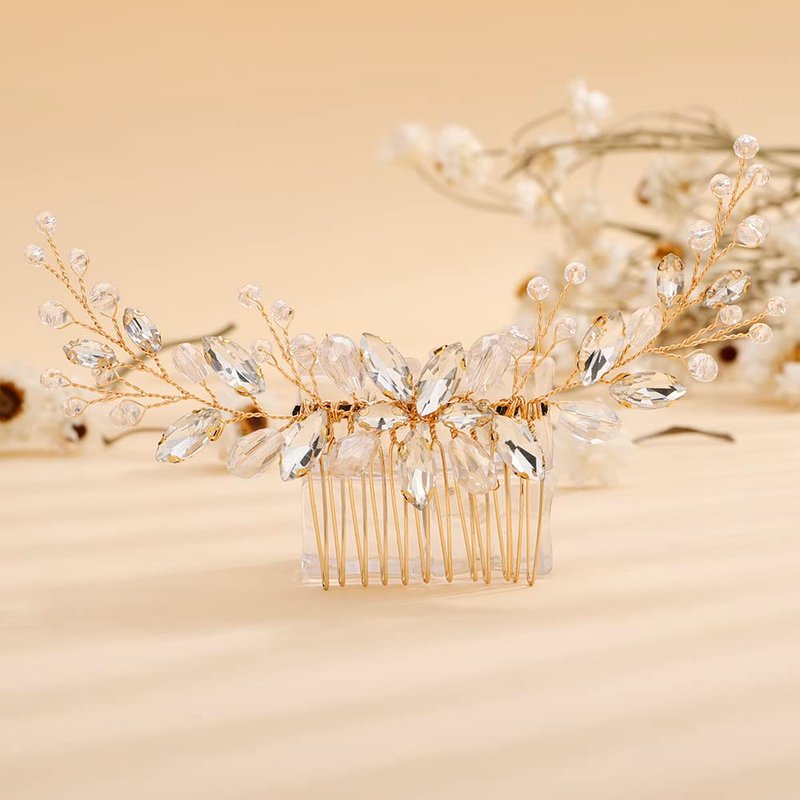 - Dainty Gold Rhinestones Crystal Hair comb Headband