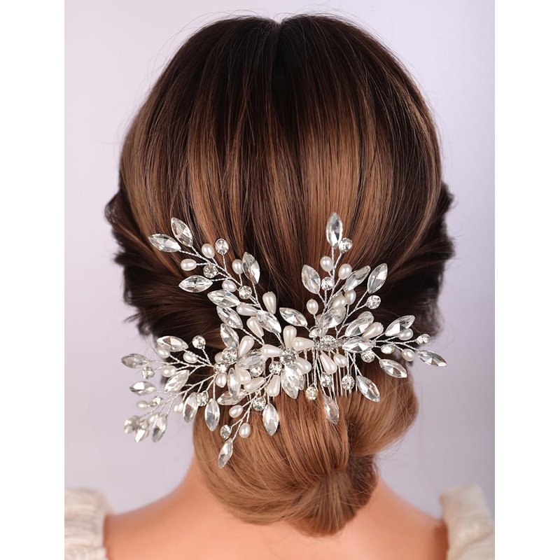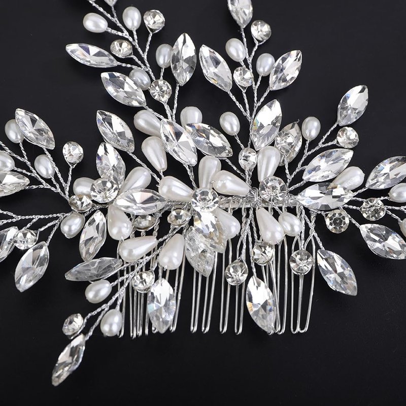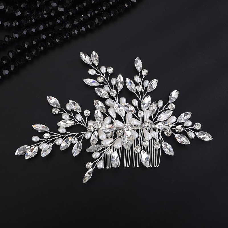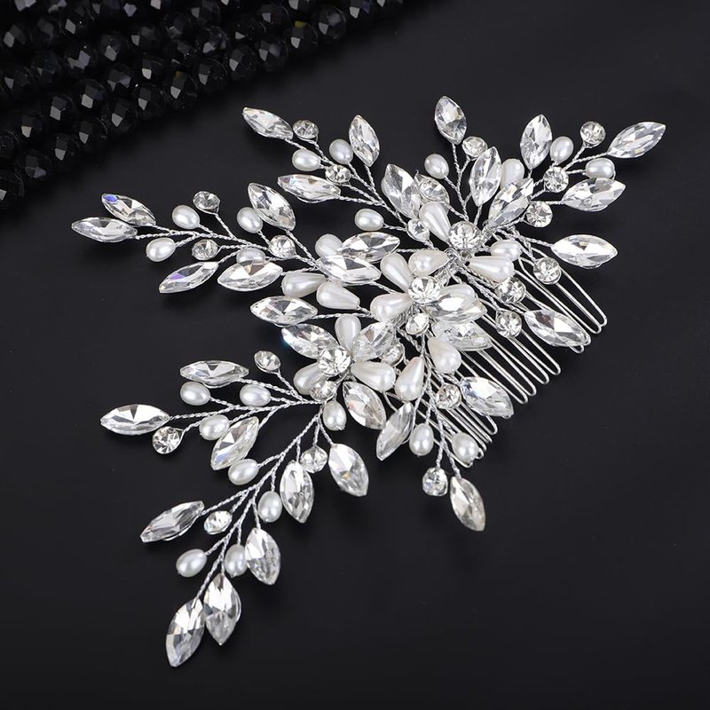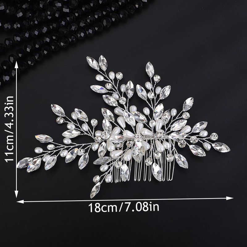 - Dalicate large crystal and pearl beads hair comb for women party prom wedding and evening,exquisite and unique design,will add more charm for your outfit.