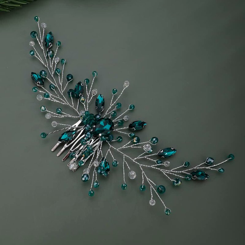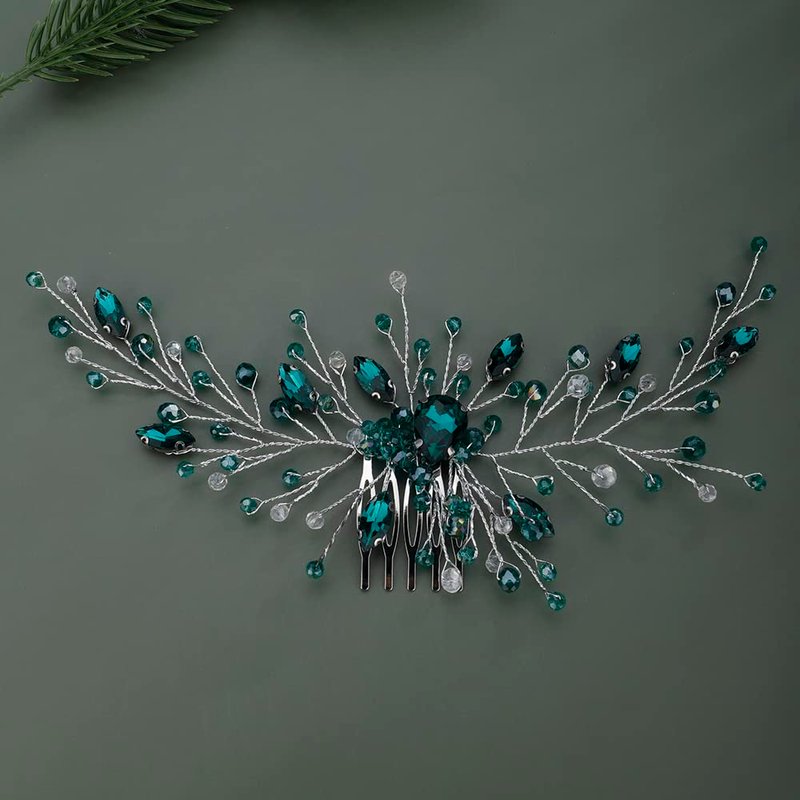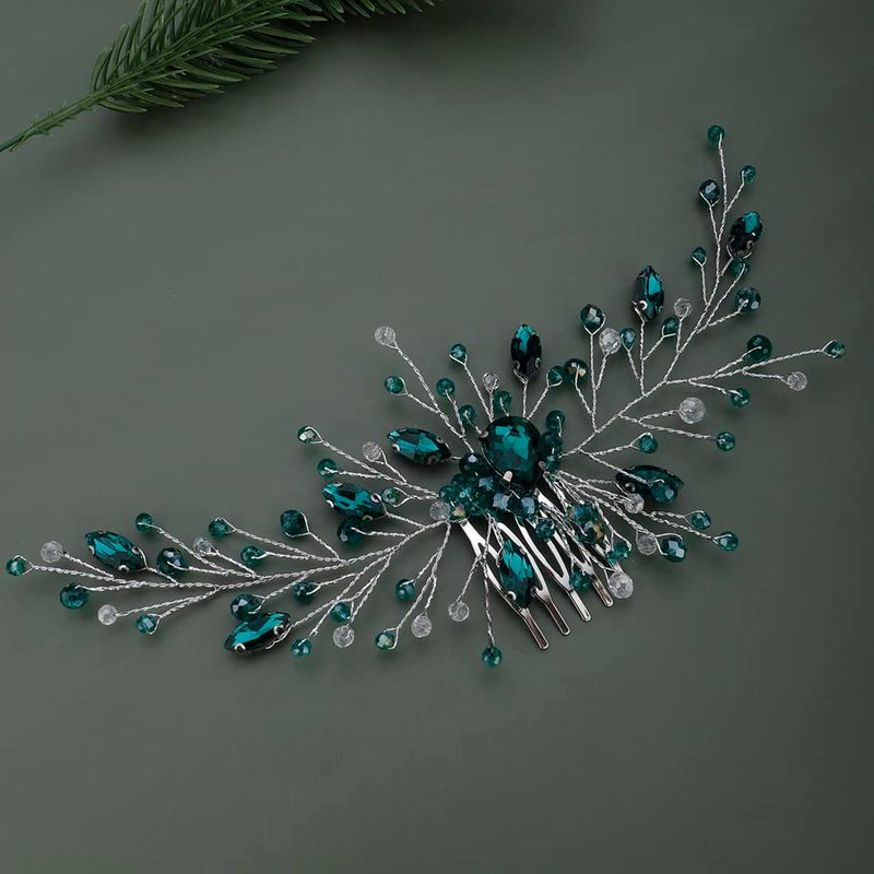 Teyglen Bridal Wedding Gold Silver Dainty Hair Combs Green Rhinestones Crystal Side Hair Comb Flower Crystal Bride Hair Accessories for Women and Girls (Silver Green)