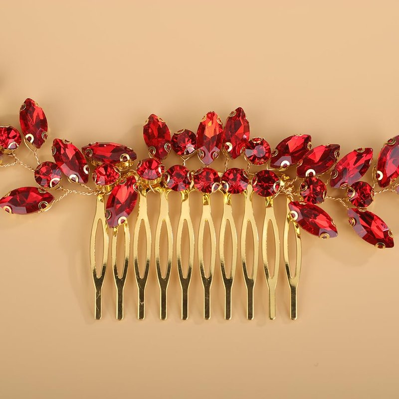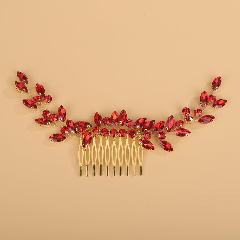 - Delicate red rhinestone crystal beads hair comb for women party prom wedding and evening,exquisite and unique design,will add more charm for your outfit.