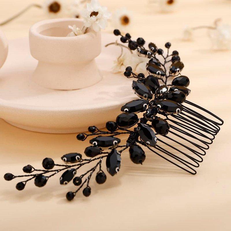 - Dainty Black Rhinestones Crystal Hair comb Headband
