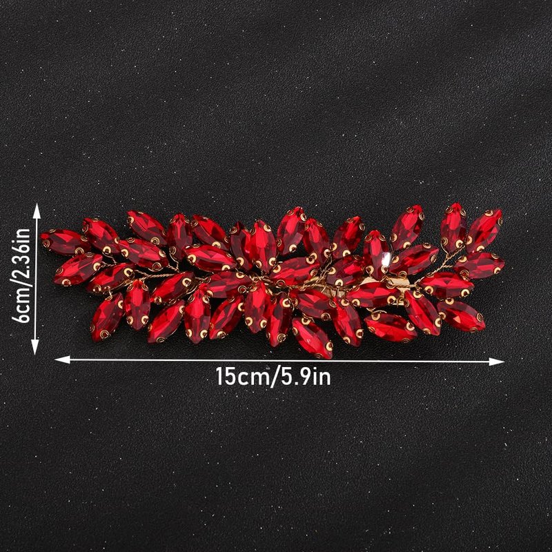Teyglen Crystal Bride Wedding Hair Clips Bridal Blue Rhinestone Hair Clip Handmade Full Rhinestone Hair Barrette Red Blue Hair Pieces Sparkly Crystal Headpieces Hair Accessories for Women Bride Girls