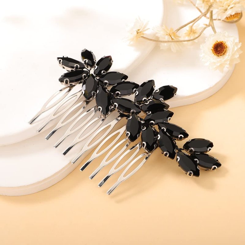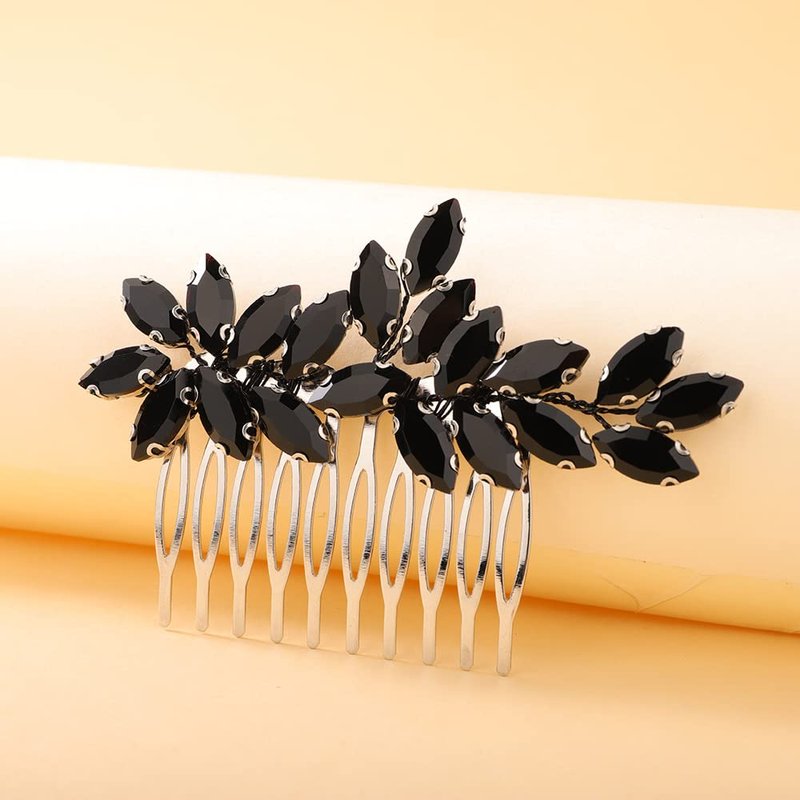 - Handmade Simple Black Rhinestone Crystal Hair Comb
