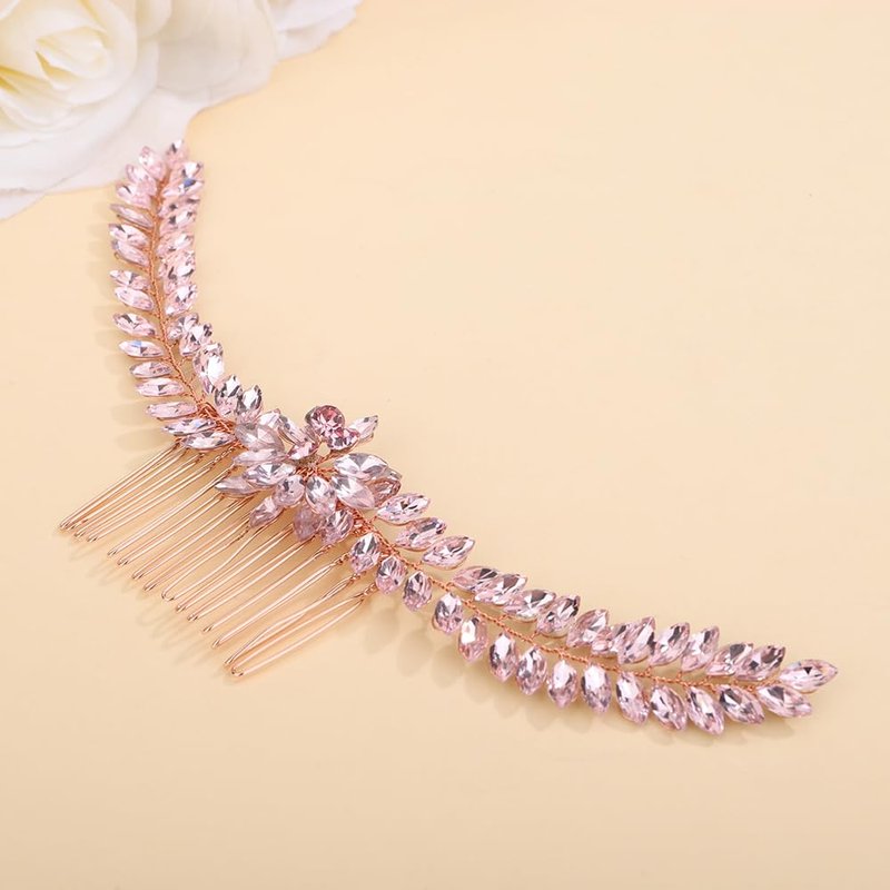 - Delicate pink rhinestone flower hair comb headband for women party prom wedding and evening,exquisite and unique design,will add more charm for your outfit.