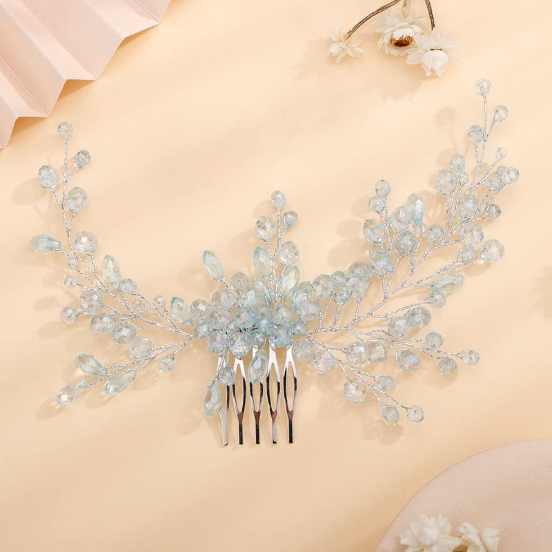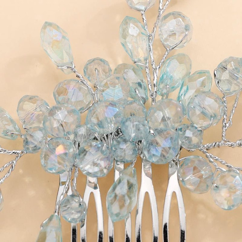 Teyglen Dainty Blue Rhinestones Bridal Hair Comb Headband with Crystals for Women and Girls (Light Blue)