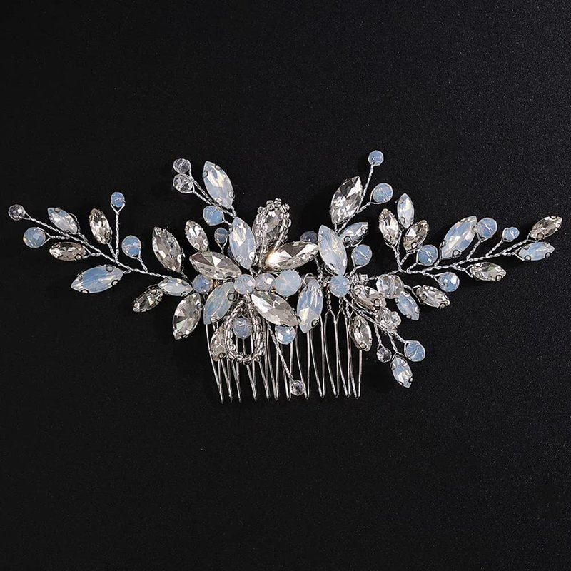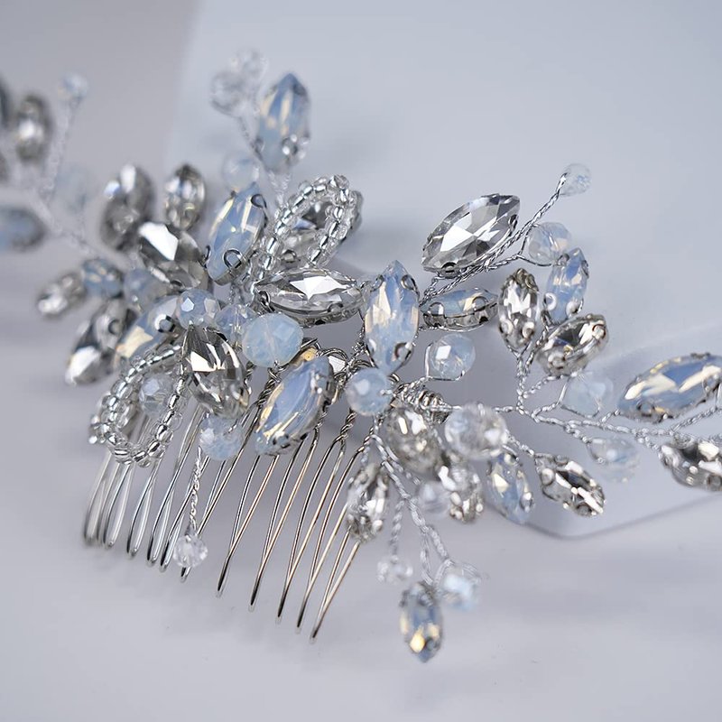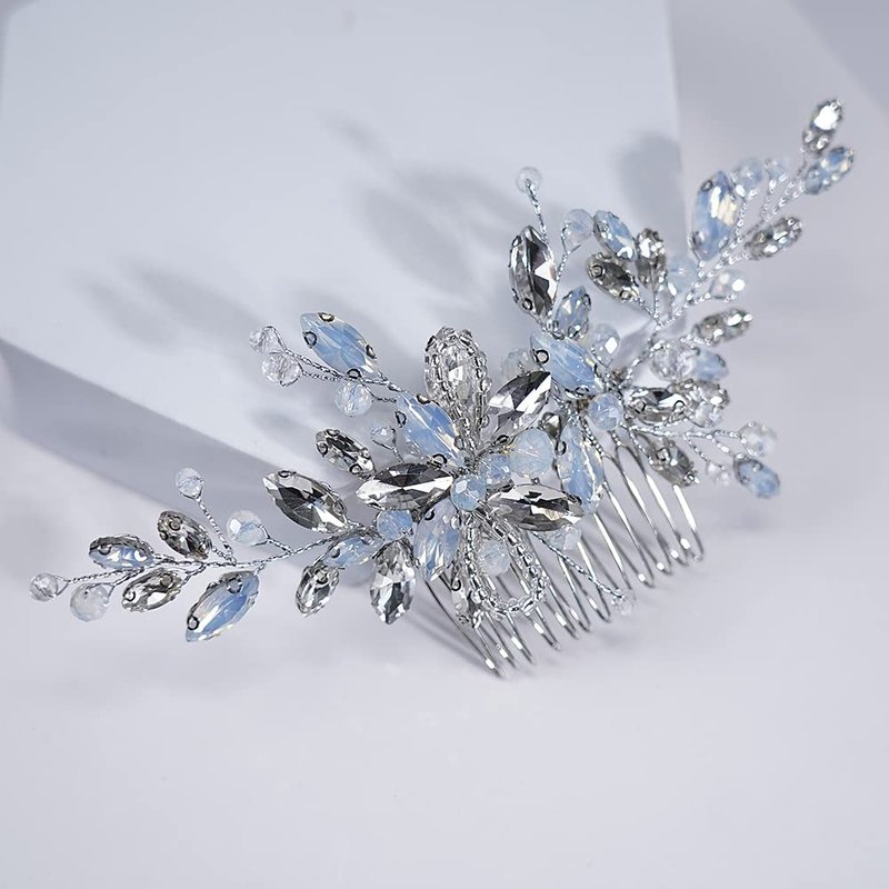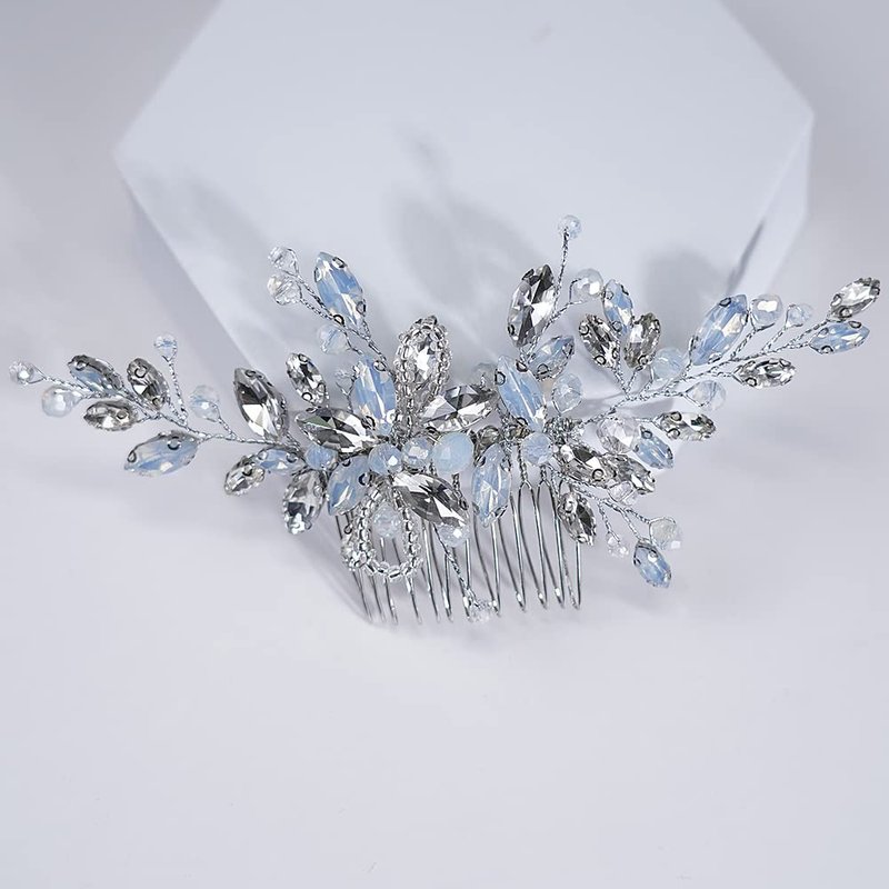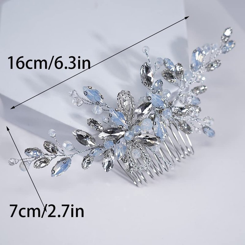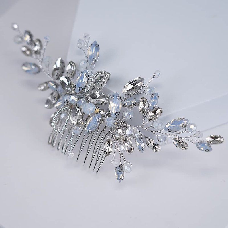 Teyglen Dainty Crystal Bridal Wedding Hair Comb Sparkly Silver Opal Rhinestone Hair Pieces Hair Accessories Bridal Side Comb Headpieces for Women Bride Girls