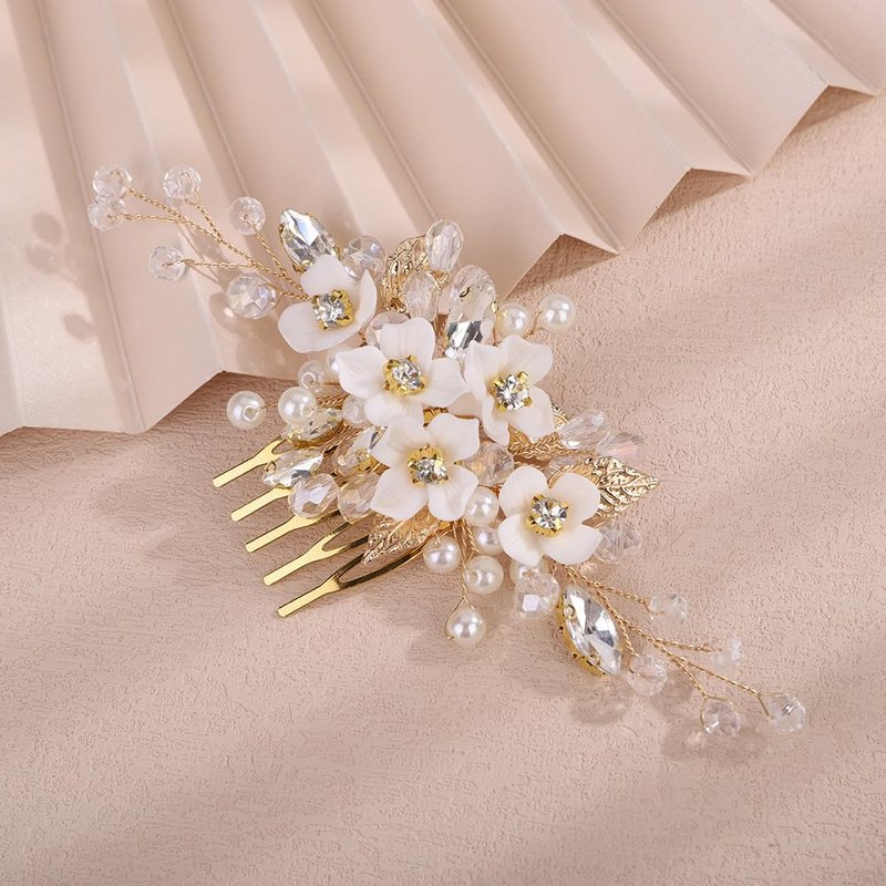 - Handmade flower rhinestone pearl hair comb for women party prom wedding and evening,exquisite and unique design,will add more charm for your outfit.
