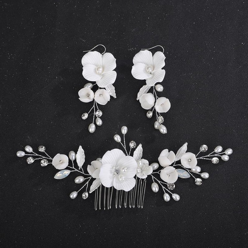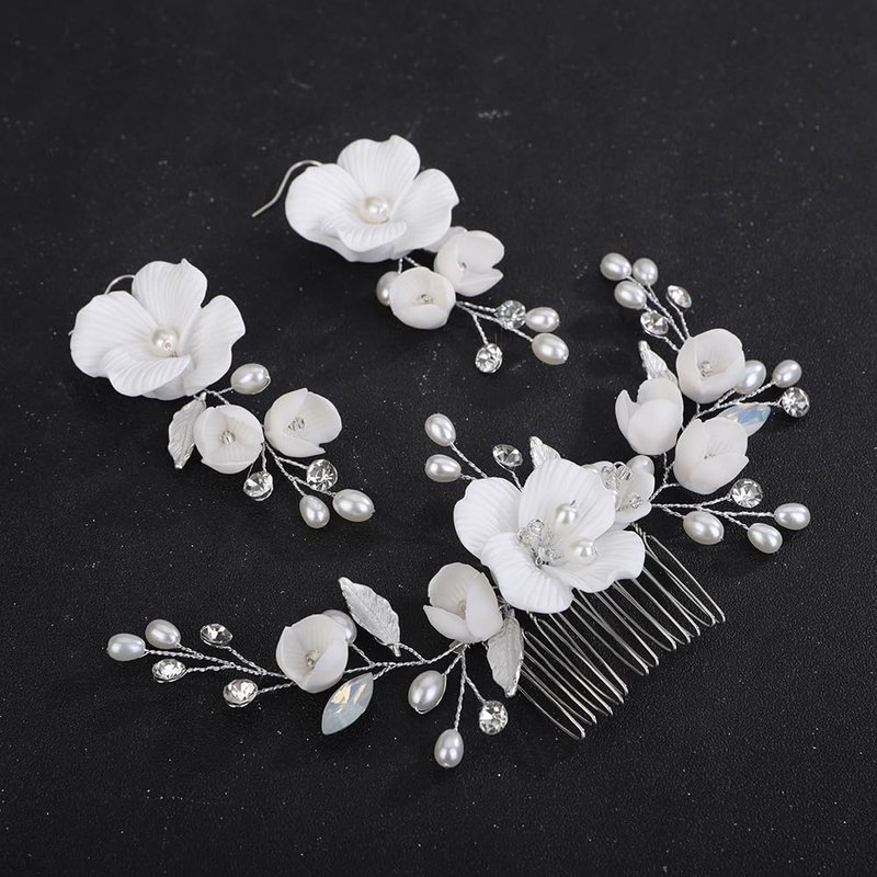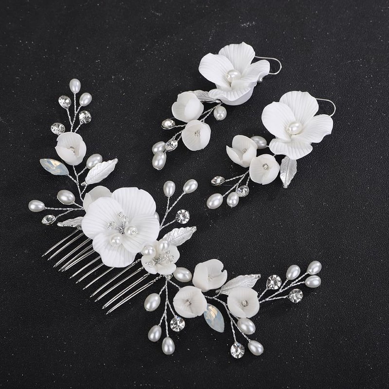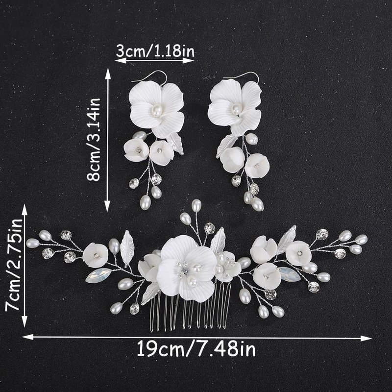 - Floral white flower rhinestone hair comb and earrings for women party prom wedding and evening,exquisite and unique design,will add more charm for your outfit.