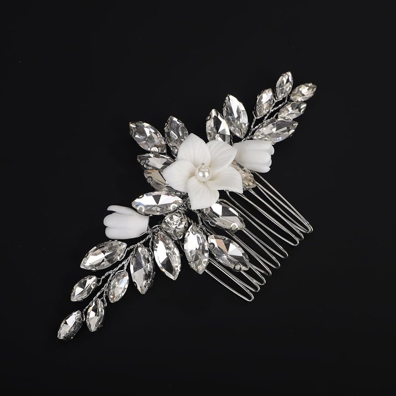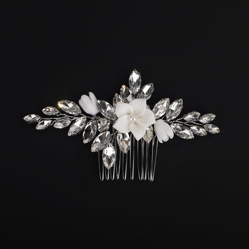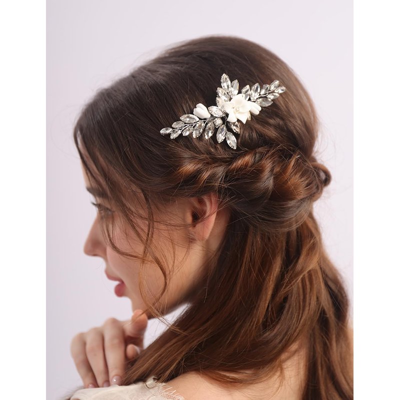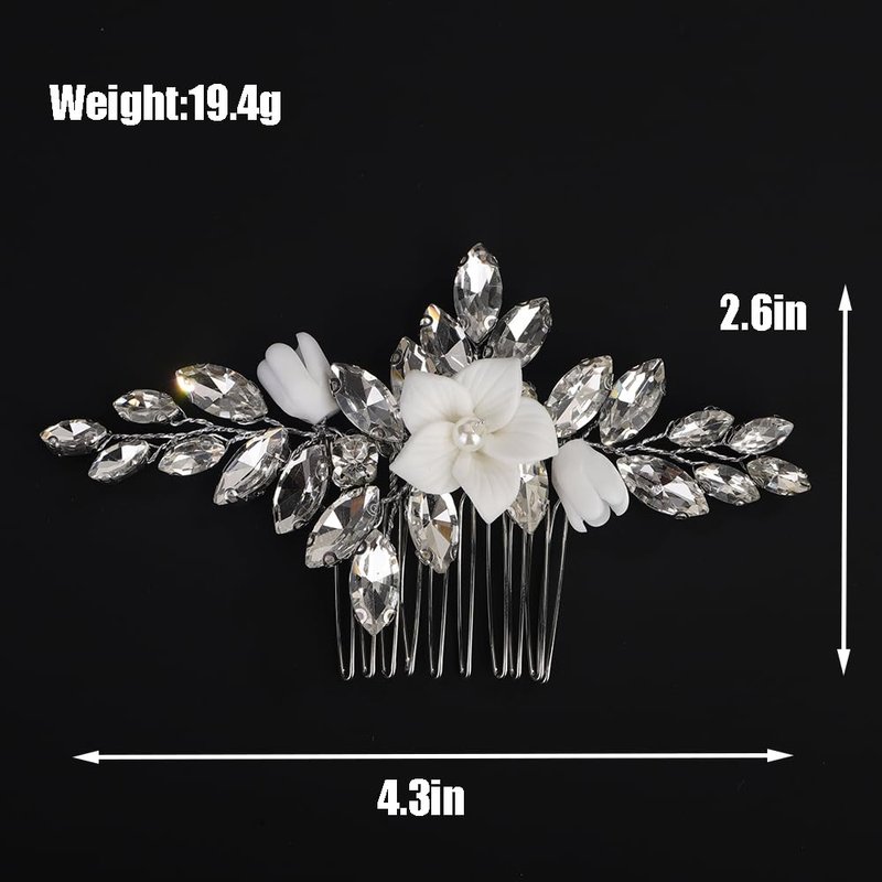 - Dainty silver rhinestone crystal hair comb with flower for women party prom wedding and evening,exquisite and unique design,will add more charm for your outfit.