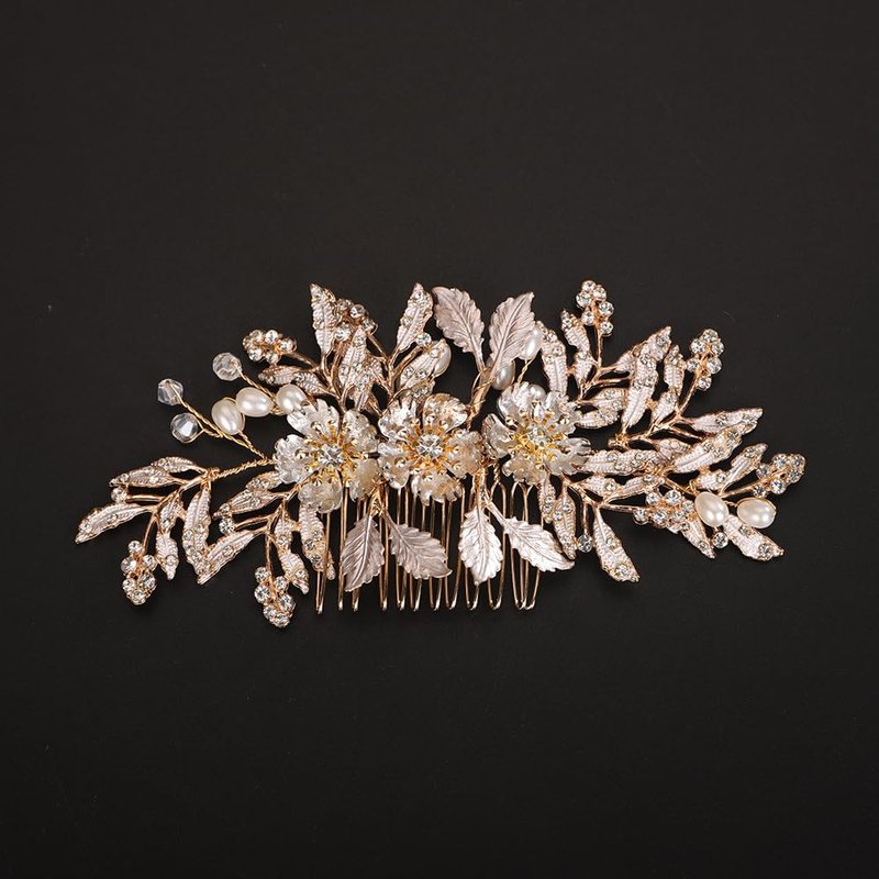 - Vintage gold leaf crystal pearl hair comb with flower for women party prom wedding and evening,exquisite and unique design,will add more charm for your outfit.
