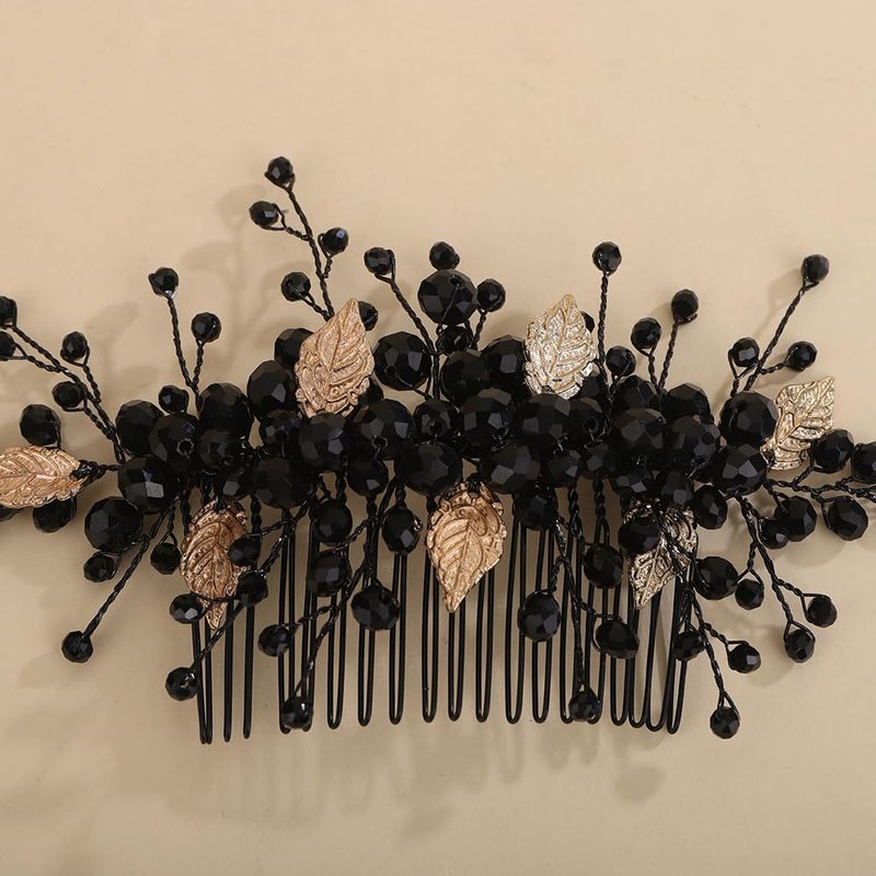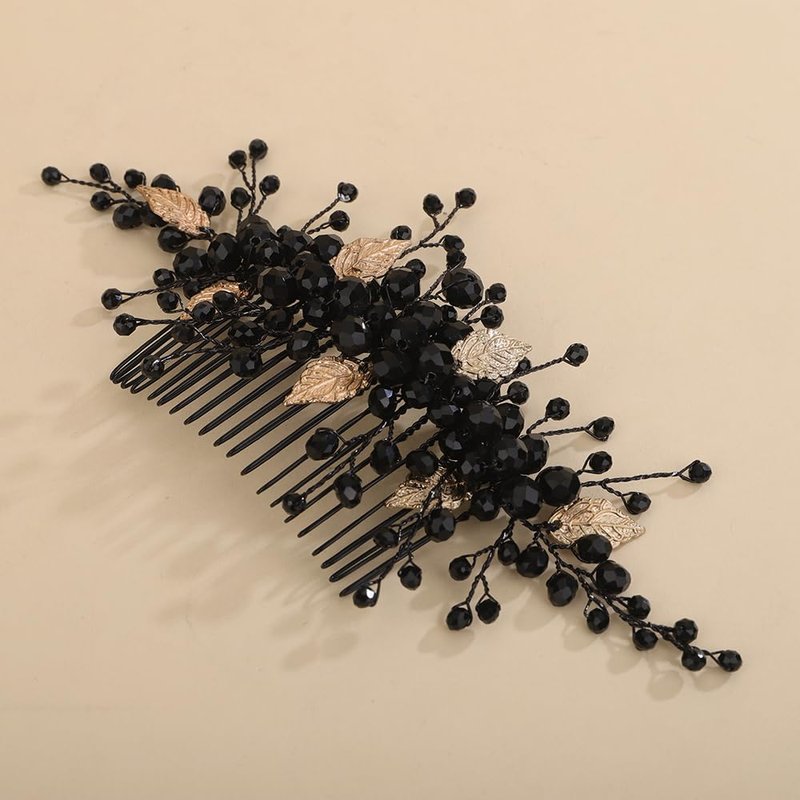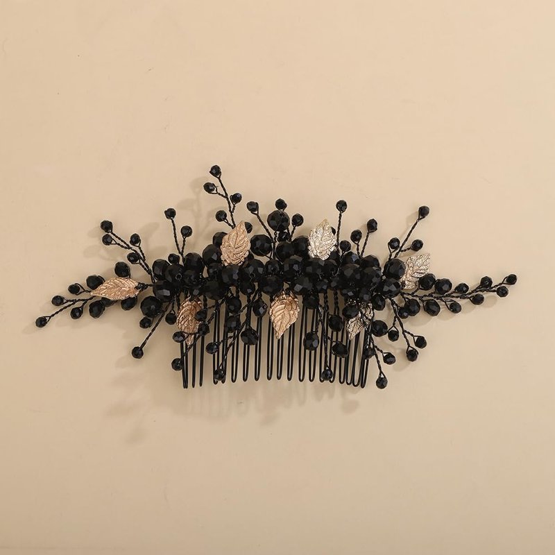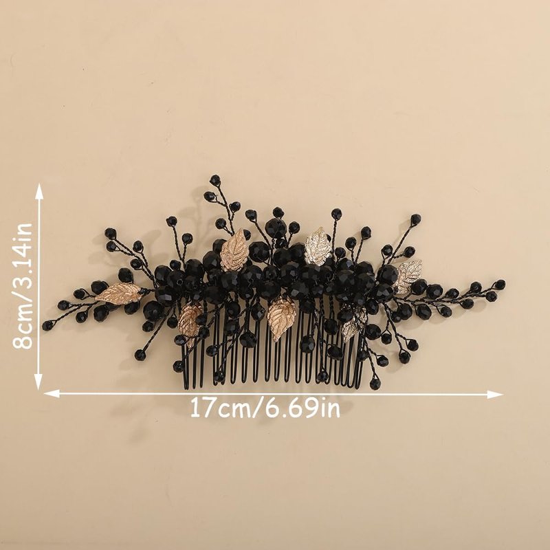 - Vintage black crystal rhinestone beads hair comb with leaf for women party prom wedding and evening,exquisite and unique design,will add more charm for your outfit.
