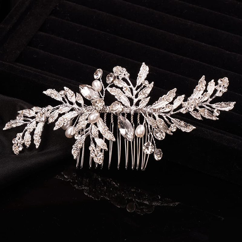 - Dainty Leaf Wedding Women Rhinestones Hair comb