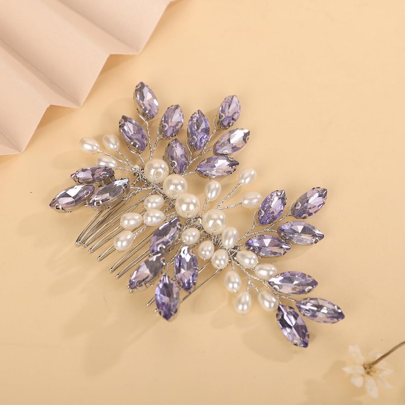 - Sparkly purple rhinestone pearl beads hair comb for women party prom wedding and evening,exquisite and unique design,will add more charm for your outfit.