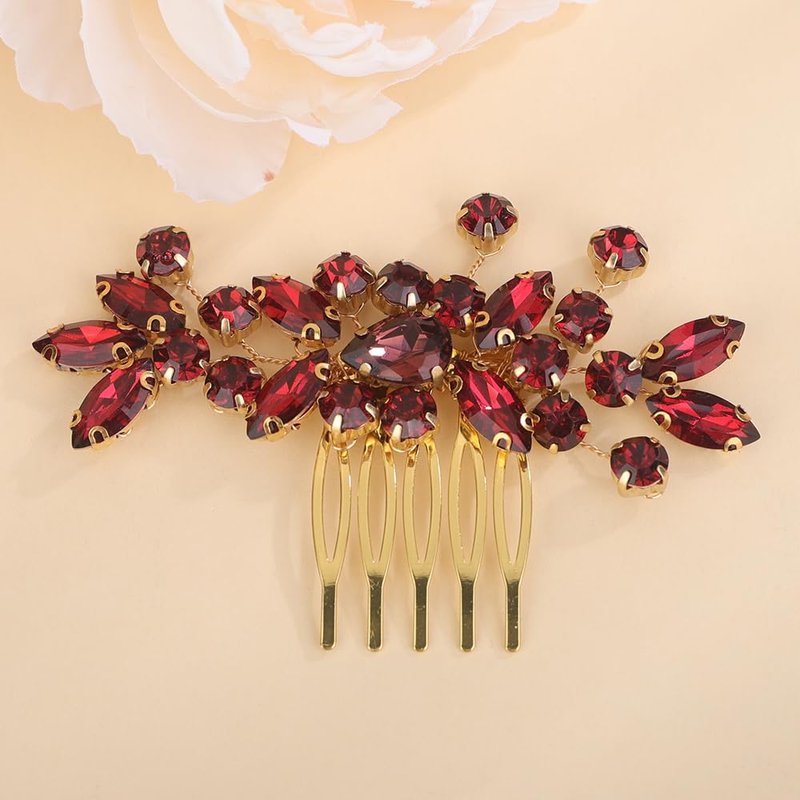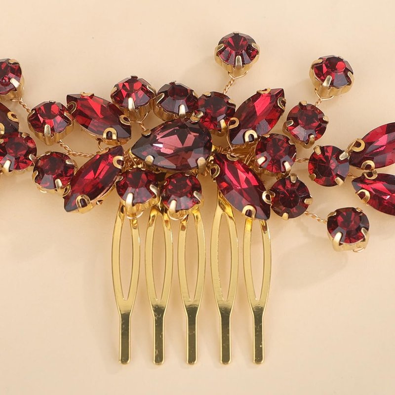 - Sparkly small red crystal rhinestone hair comb for women party prom wedding and evening,exquisite and unique design,will add more charm for your outfit.